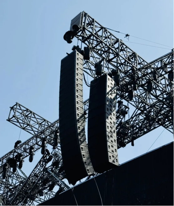 此外,为了进一步增强低频效果,主扩音箱后方还吊挂了一组超低频音箱,为远区的观众提供充足的低频能量覆盖。地面的超低频也为整个场地带来深沉而有力的低频效果。
